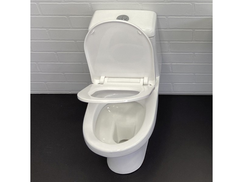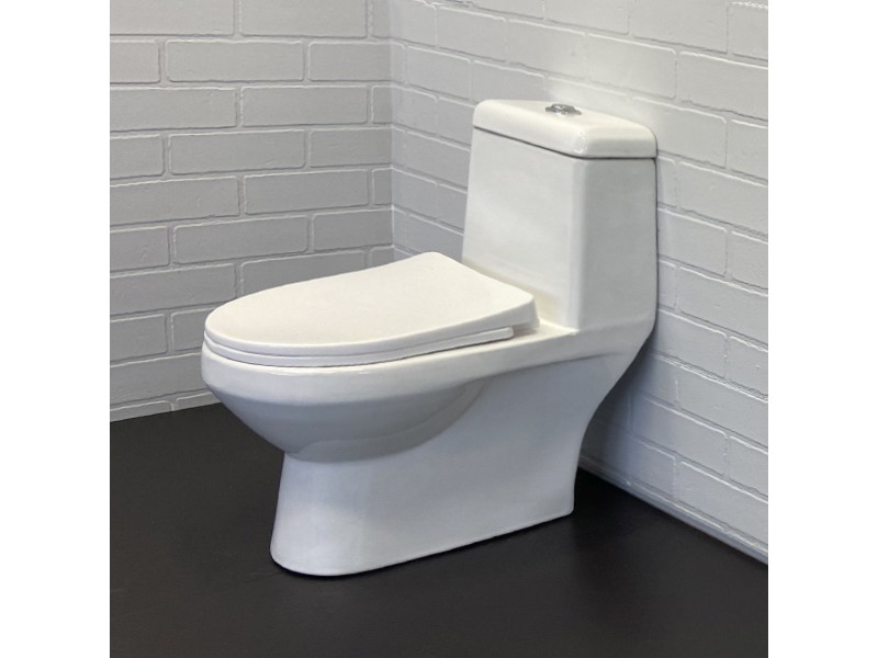 Напольный унитаз моноблок Comforty 2311W белого цвета c крышкой-сиденьем с функцией плавного закрывания.