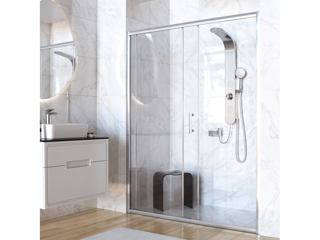Душевая дверь может быть дополнена одной или двумя боковыми стенками — сборка представляет собой душевой уголок или пристенное душевое ограждение соответственно