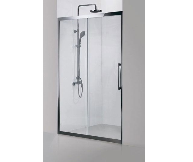 Откатная стеклянная душевая дверь заключена в профиль из нержавеющей стали, оснащены горизонтальной металлической ручкой и бесшумно и без усилий передвигаются на двойном усиленном ролике с подшипником. Цвет профиля – хром, что обеспечивает превосходное отражение и придает конструкции особый шарм.