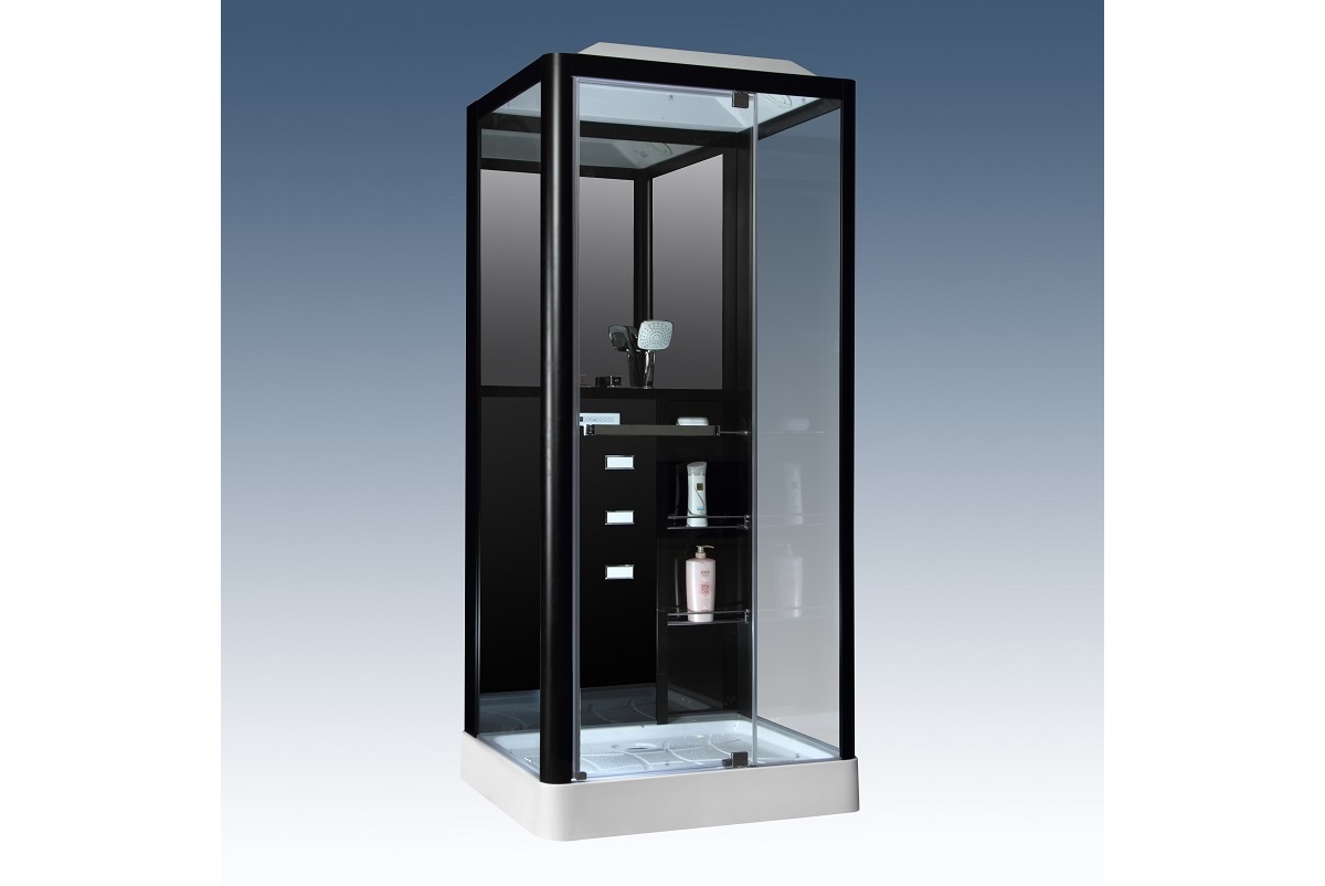 Алюминиевая рама, Закаленное стекло 6мм, управляется сенсорной панелью, радио, вентилятор, светильник, полка, смеситель 3 режимный кран, массаж ног, крыша с верхним душем, ручная лейка.
