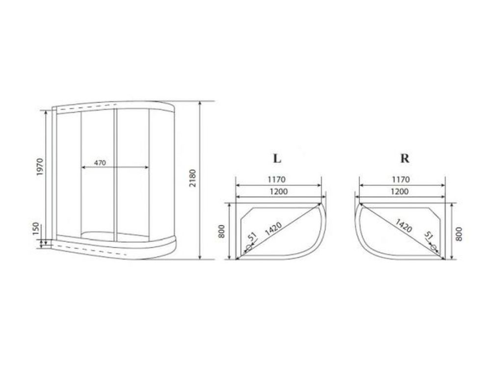 Размеры 1200x800x2180, высота поддона 150 мм, матовые структурные стекла, верхний душ (тропический ливень), встроенный однорычажный смеситель TIMO с трехрежимным переключателем на верхний душ, душевую лейку, гидромассажные форсунки, хромированный смеситель, сенсорный пульт нового поколения с функциями включения/выключения, FM-радио, зеркало, верхний свет, вентиляция, безопасное напряжение на выходе 12 V. Быстрая безсиликоновая сборка.