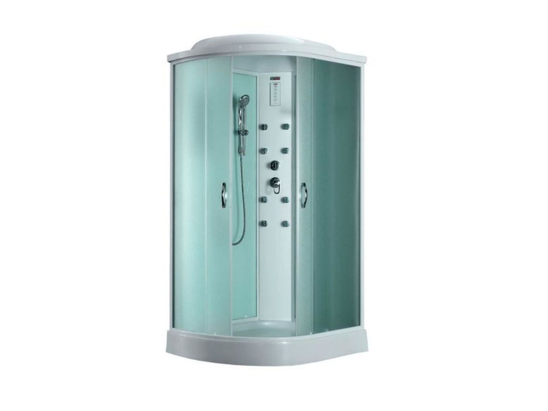 Размеры 1200x800x2180, высота поддона 150 мм, матовые структурные стекла, верхний душ (тропический ливень), встроенный однорычажный смеситель TIMO с трехрежимным переключателем на верхний душ, душевую лейку, гидромассажные форсунки, хромированный смеситель, сенсорный пульт нового поколения с функциями включения/выключения, FM-радио, зеркало, верхний свет, вентиляция, безопасное напряжение на выходе 12 V. Быстрая безсиликоновая сборка.