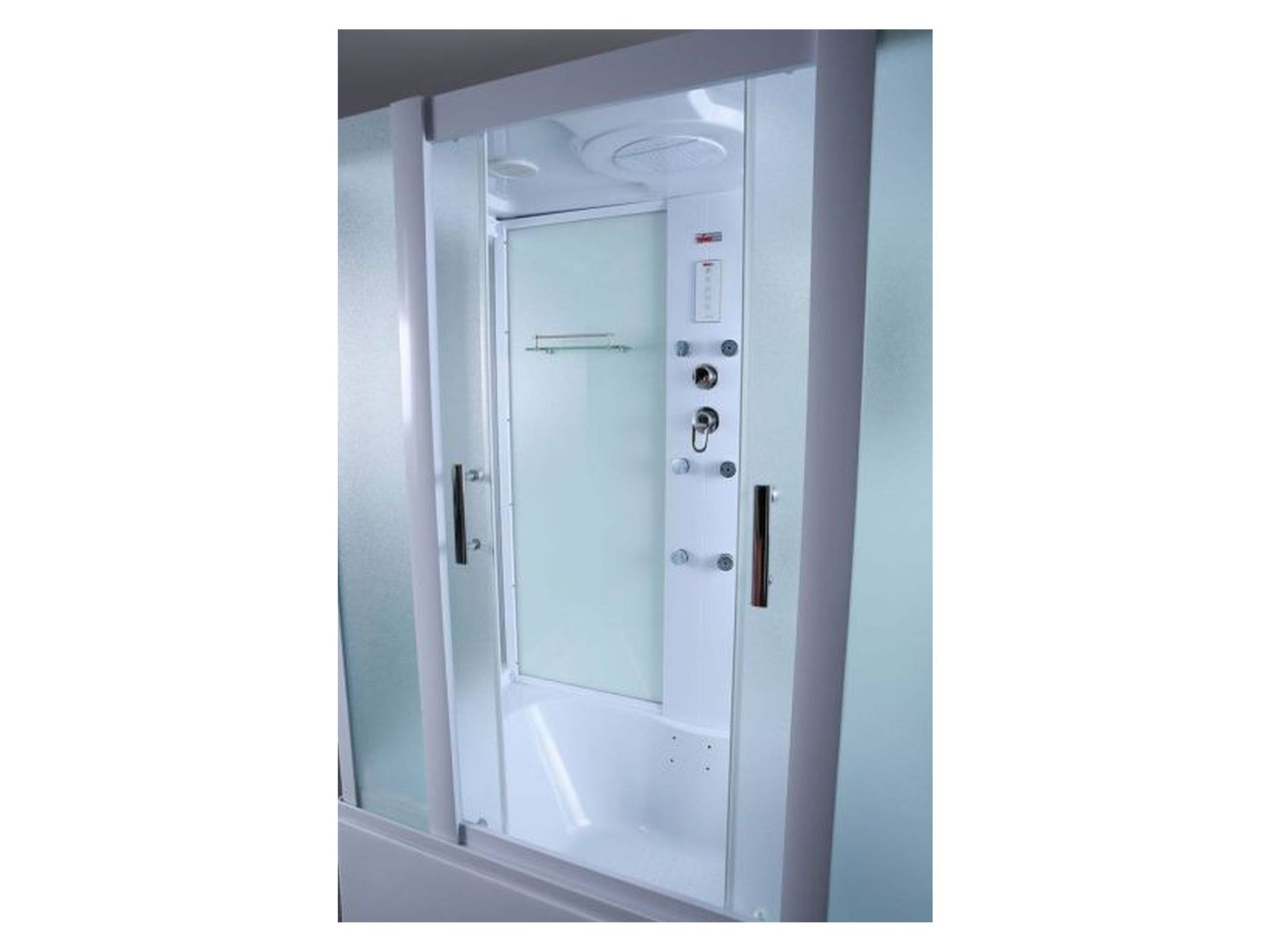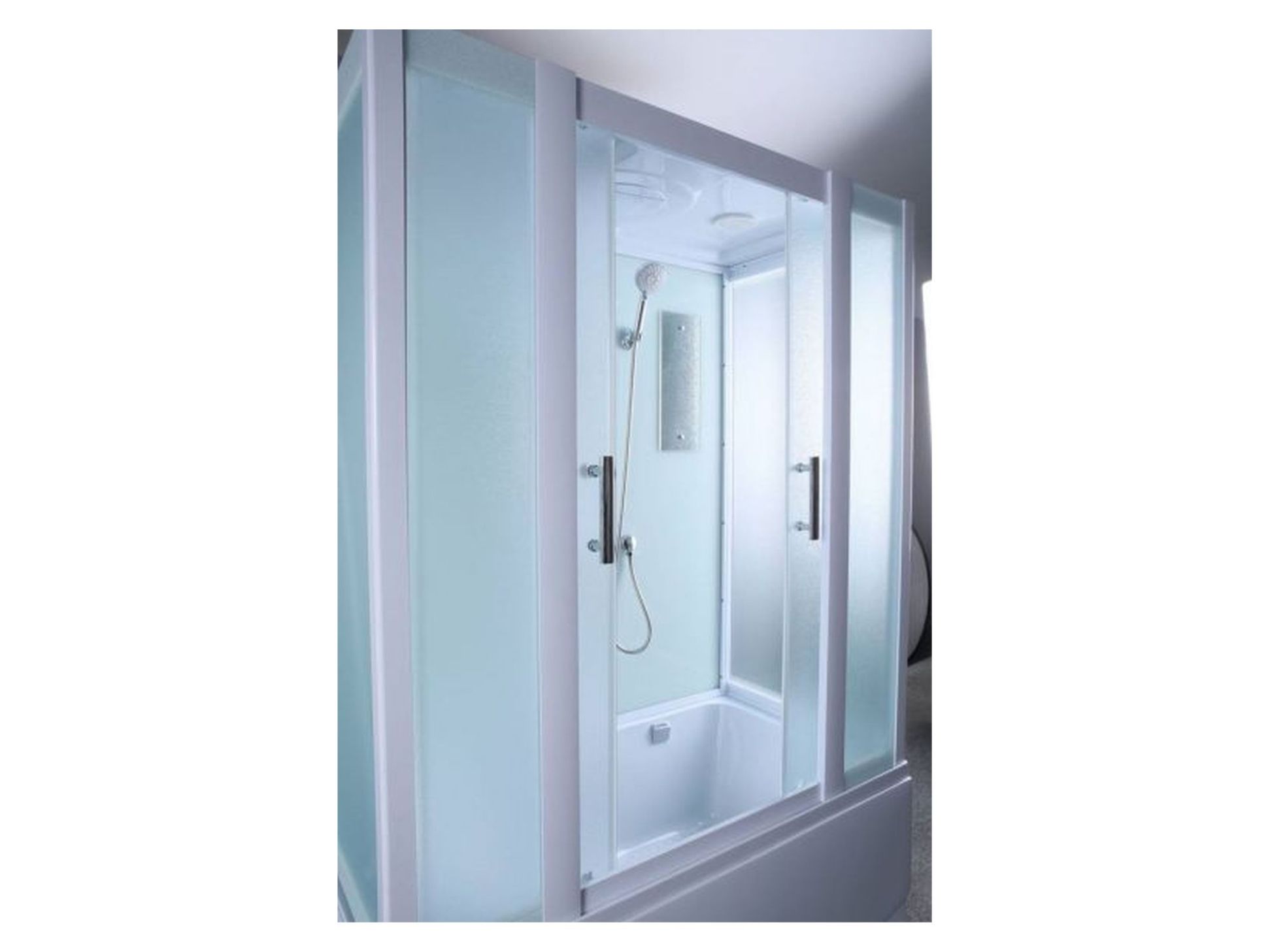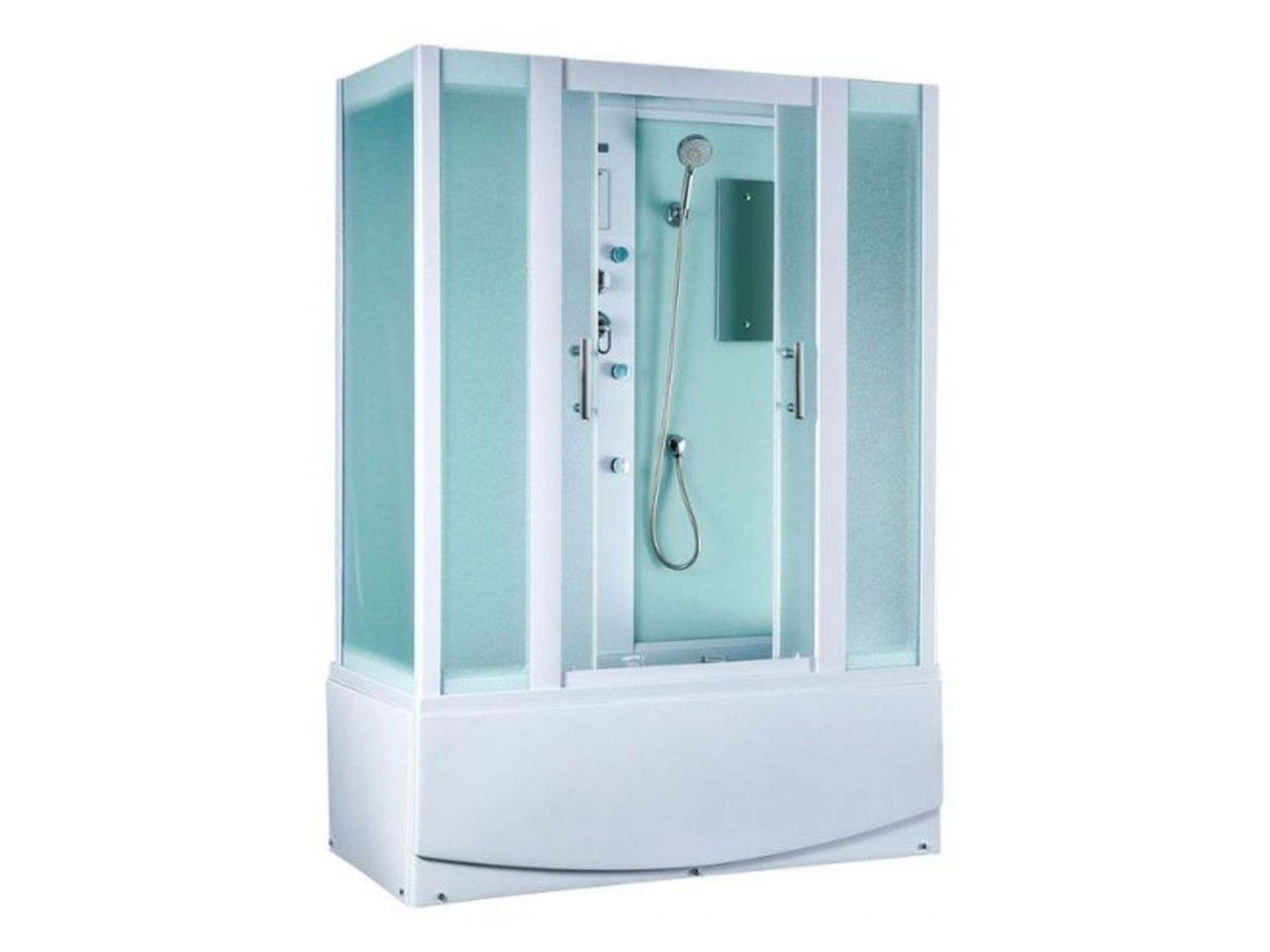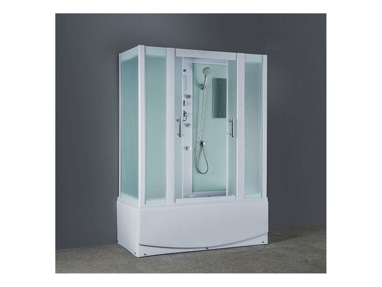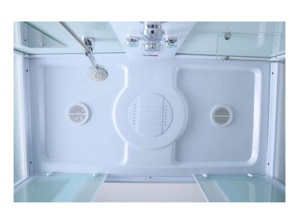 Размеры 1680x800x2180, высота поддона 60 см, структурные матовые стекла, съемный экран из трех частей, хромированный слив-перелив П/А с сифоном, алюминиевый профиль - белый матовый, верхний душ (тропический ливень), встроенный однорычажный смеситель TIMO с четырехрежимным переключателем на верхний душ, душевую массажную лейку, гидромассажные форсунки, наполнитель ванны, хромированный смеситель, зеркало, ручки, сенсорный пульт нового поколения с функциями включения/выключения, FM-радио, верхний свет, вентиляция, безопасное напряжение на выходе 12 V. Сборка осуществляется с применением герметика.