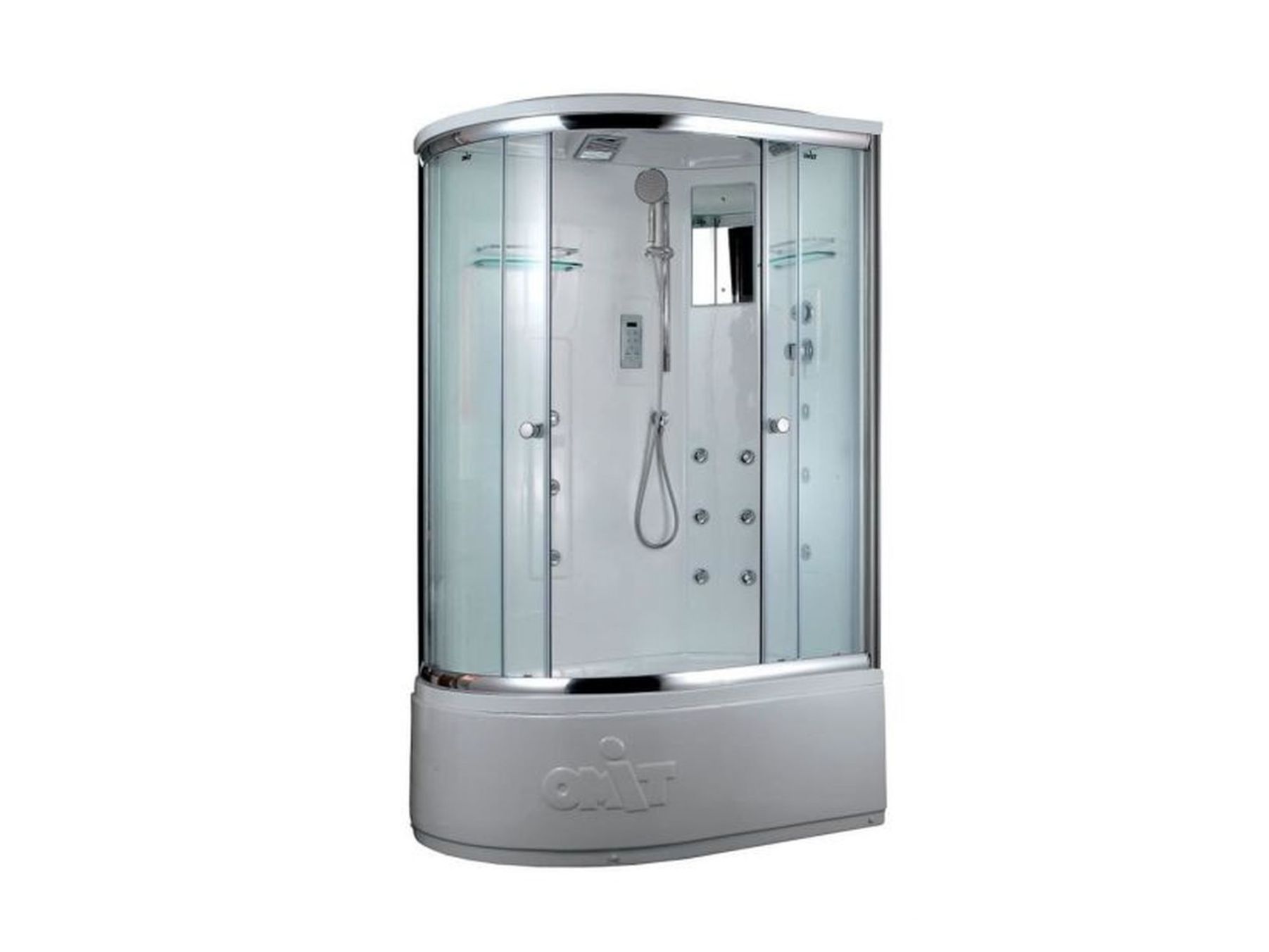 Левосторонняя душевая кабина, размеры 1200х850х2200, прозрачные стекла, высота поддона 480 мм, верхний душ (тропический ливень), встроенный однорычажный смеситель TIMO с четырехрежимным переключателем на верхний душ (TROPICAL RAIN), анодированный, алюминиевый, хромированный профиль, сенсорный пульт нового поколения TsCP с функциями включения/выключения, FM-радио, зеркало, верхний свет, вентиляция, безопасное напряжение на выходе 12 V.