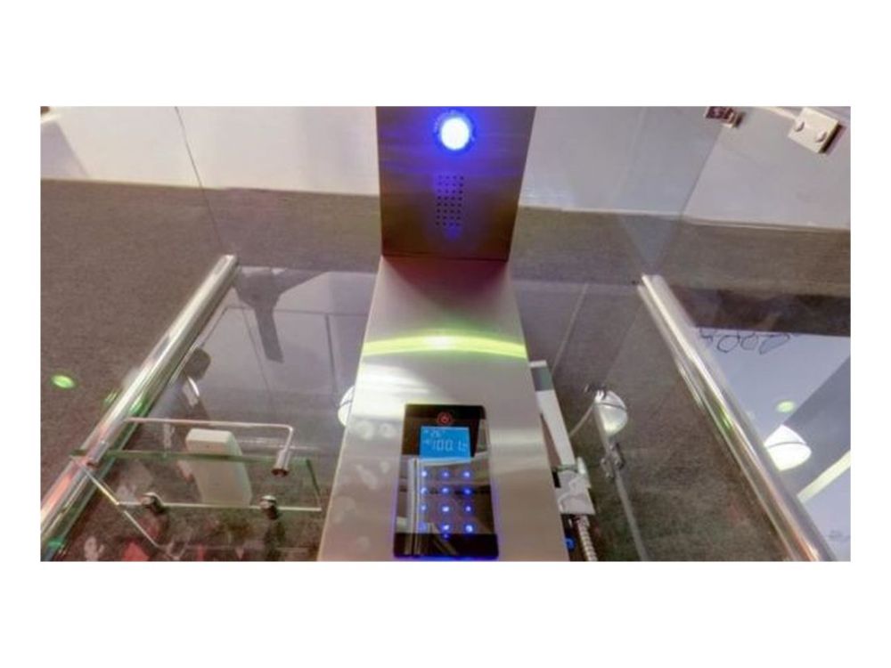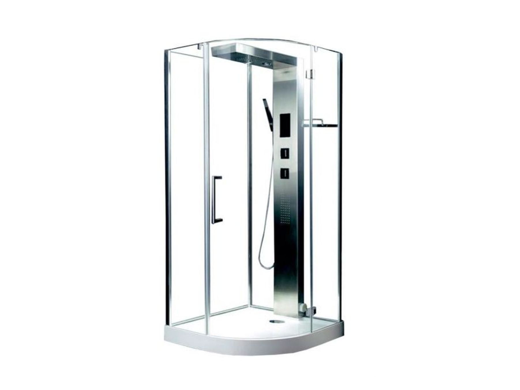 Размеры 900х900х2150, прозрачные стекла, стеклянная панорамная крыша, высота поддона 150 мм, верхний душ (тропический ливень),центральная консоль и тропический душ выполнены из полированной нержавеющей стали, распашные двери на стальных петлях, FM-радио, подключение к CD, LED-хромотерапия - 7 цветов, современный сенсорный пульт управления, турецкая баня, лейка Hi-Tech, оригинальные смеситель и переключатель режимов, верхняя подсветка, вентиляция, безопасное напряжение на выходе 12 V.