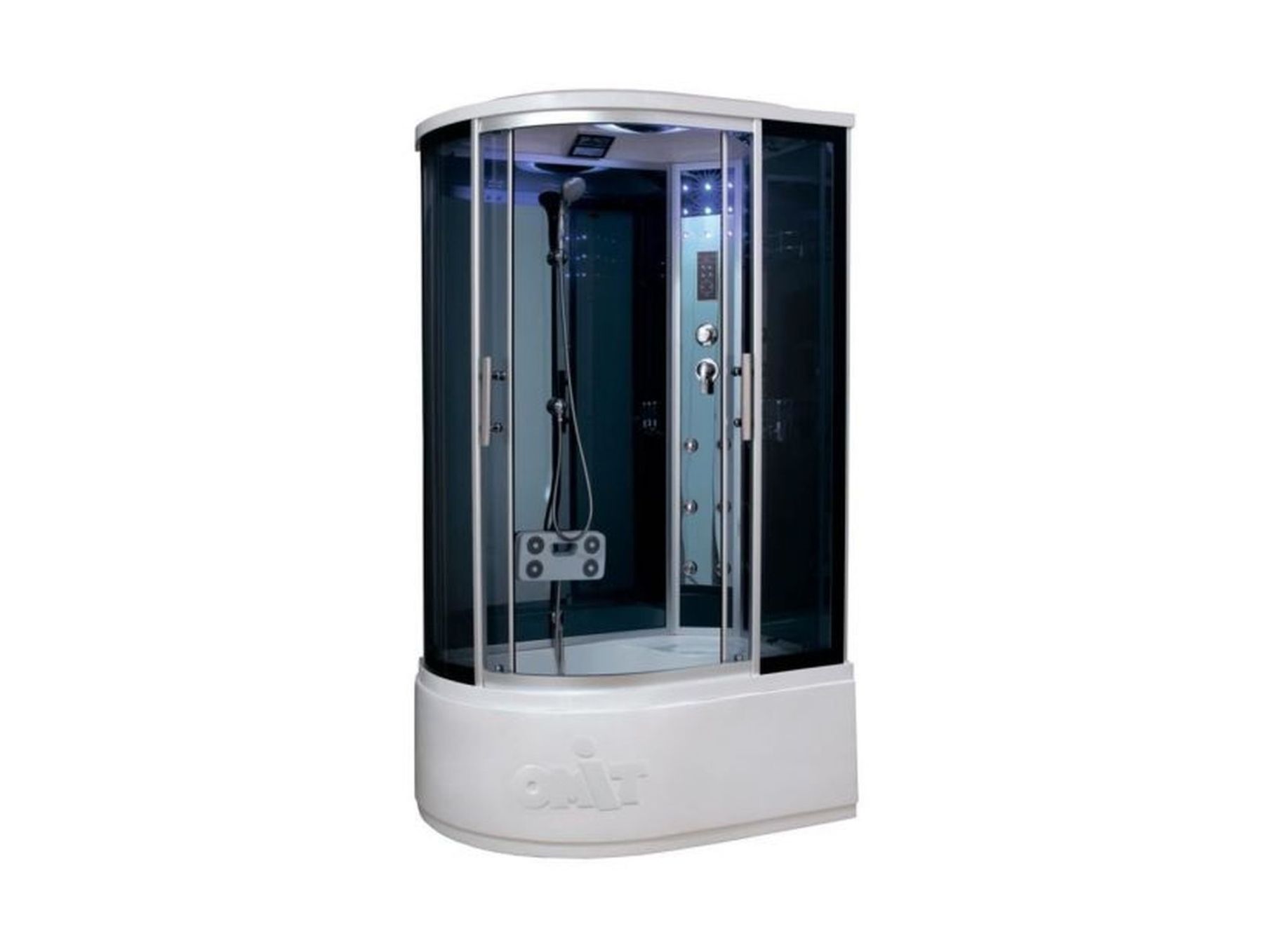 Правосторонняя душевая кабина, размеры 1100х850х2200, высота поддона 480 мм, парогенератор, верхний душ (тропический ливень), встроенный однорычажный смеситель TIMO с четырехрежимным переключателем на верхний душ (TROPICAL RAIN), сенсорный пульт нового поколения TsCP с функциями включения/выключения, FM-радио, верхний и боковой свет, гидромассаж ступней, вентиляция, безопасное напряжение на выходе 12 V.