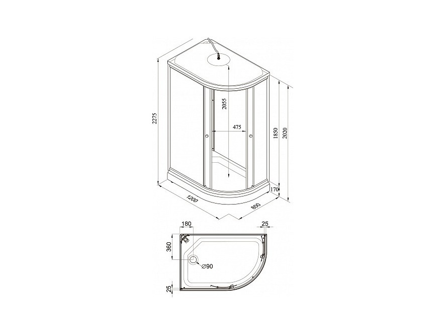 В комплекте: душевая кабина, поддон, каркас, сифон.