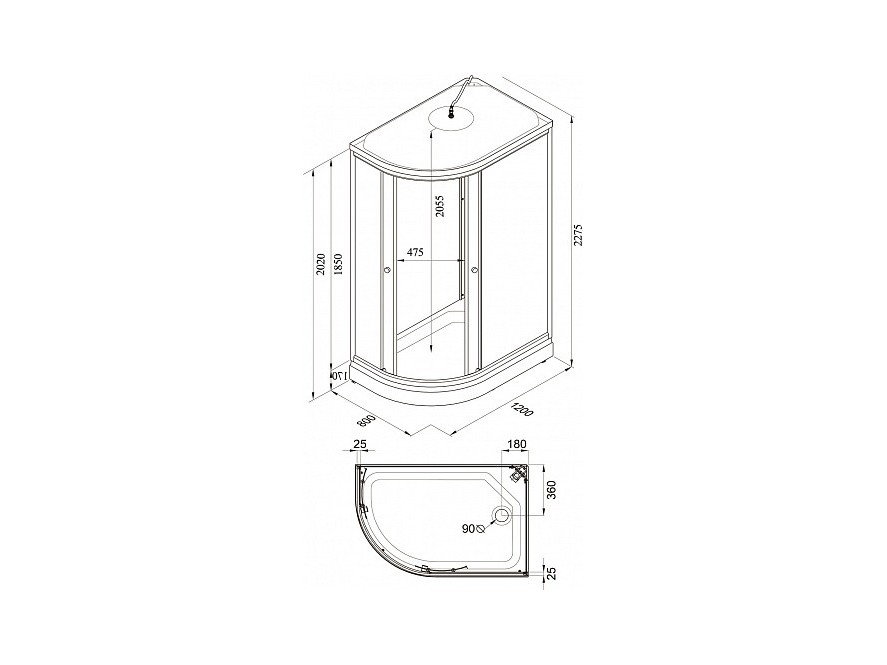 В комплекте: душевая кабина, поддон, каркас, сифон.
