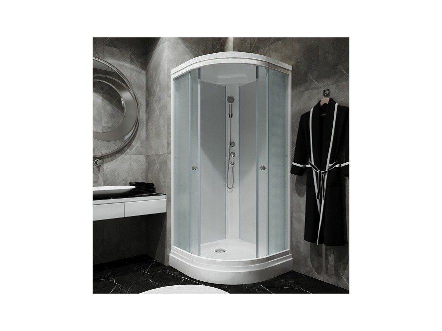 В комплекте: душевая кабина, поддон, каркас, сифон.