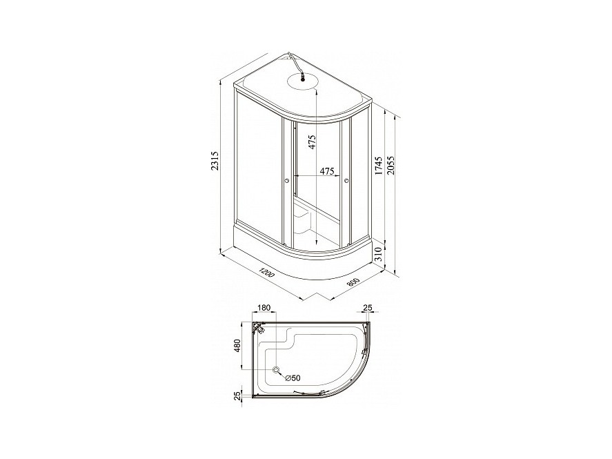 В комплекте: душевая кабина, поддон, каркас, сифон.