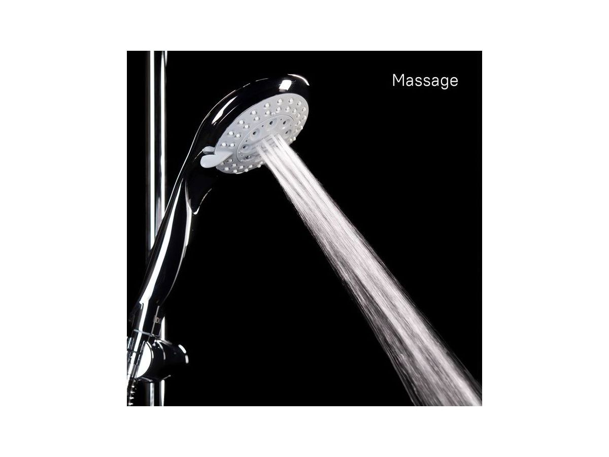 Лейка для душа, количество режимов: 5 (Rain, Massage, Rain&Massage, Bubbling, Rain&Bubbling), рычажное переключение, система легкой очистки Easy Clean. Диаметр лейки: 120 мм.