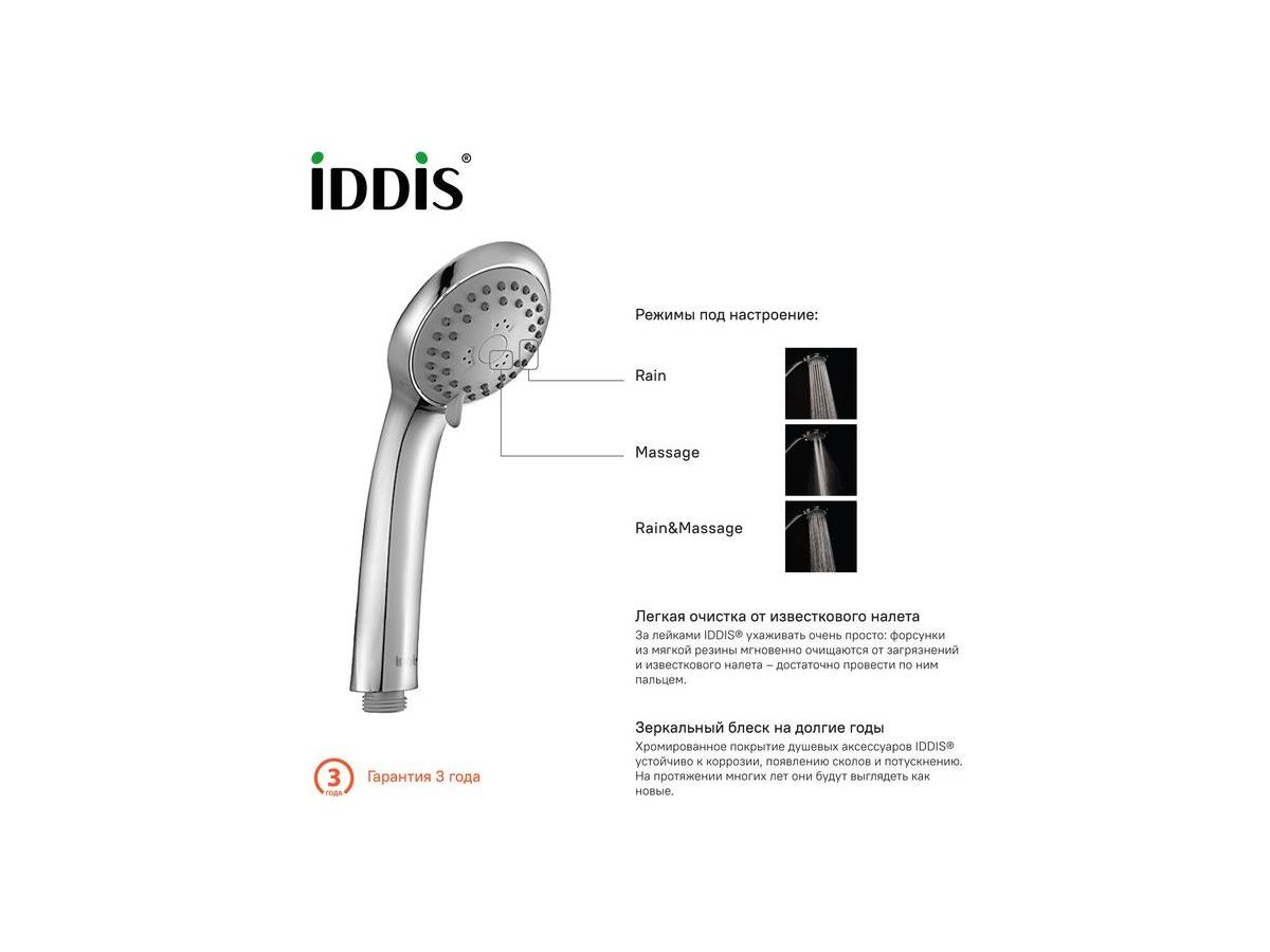 Лейка для душа, количество режимов: 3 (Rain, Massage, Rain&Massage), рычажное переключение, система легкой очистки Easy Clean. Диаметр лейки: 79,6 мм.