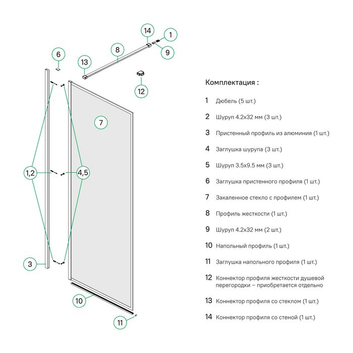 - Для соединения душевых перегородок Walk In необходим соединительный коннектор, который приобретается отдельно (артикул SLI1BS0i23).