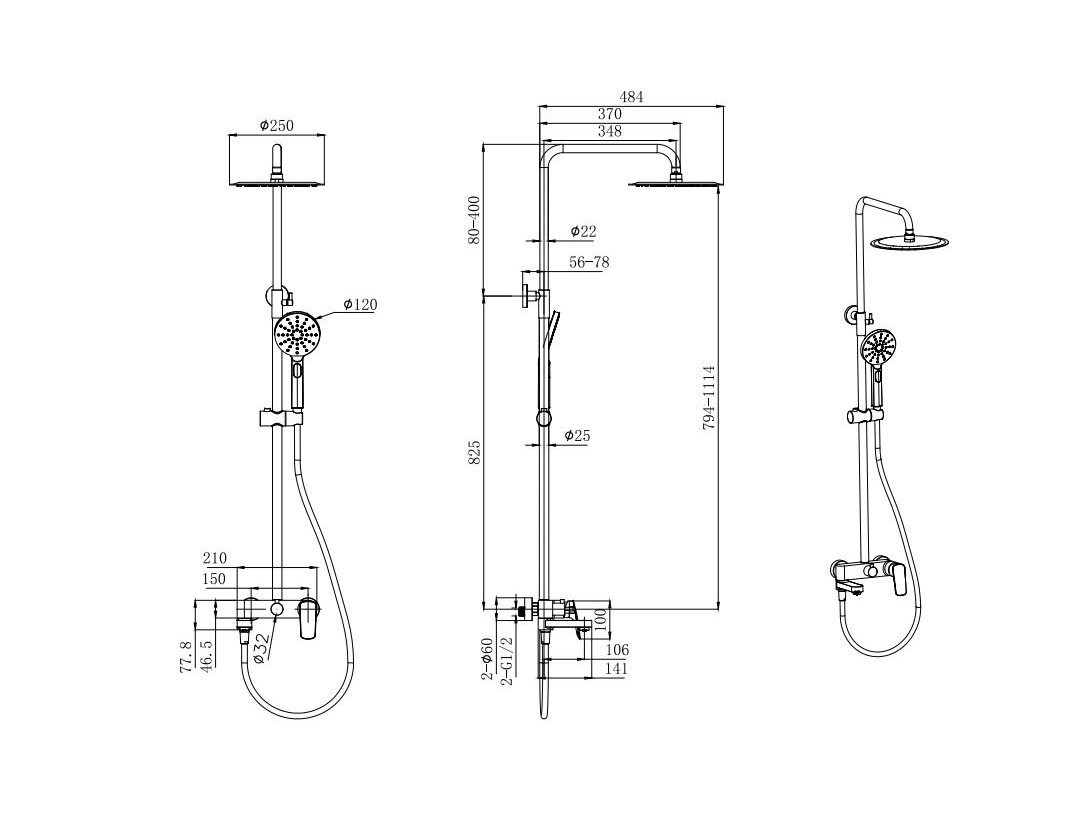 • регулируемая душевая штанга из нержавеющей стали, выдвигающаяся до 1114 мм в высоту