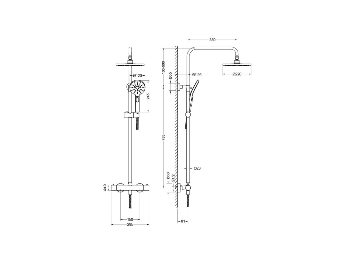 • регулируемая душевая штанга из нержавеющей стали, выдвигающаяся до 1383 мм в высоту