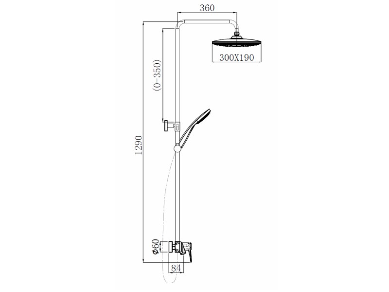 - прямоугольная лейка верхнего душа 390х190 мм, на шаровом шарнире, угол наклона 15 градусов