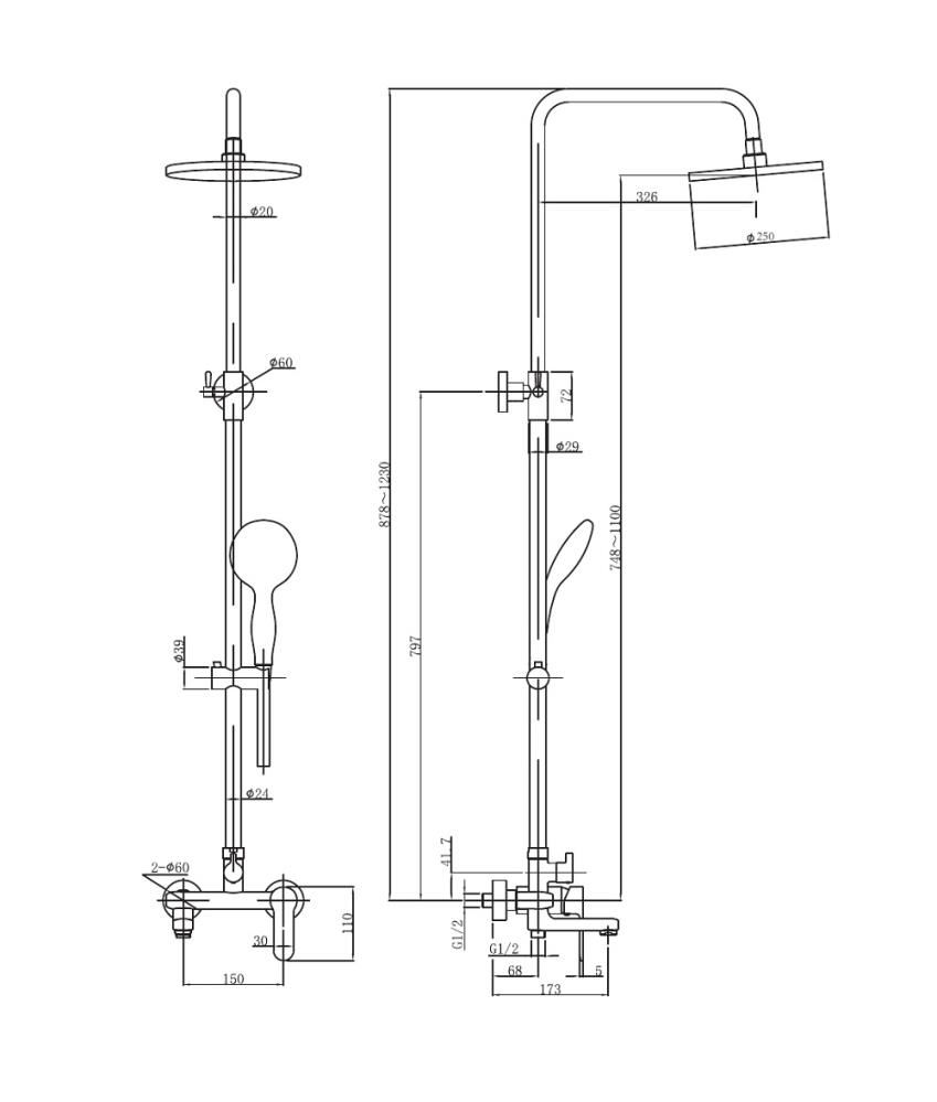 Размер верхнего душа
