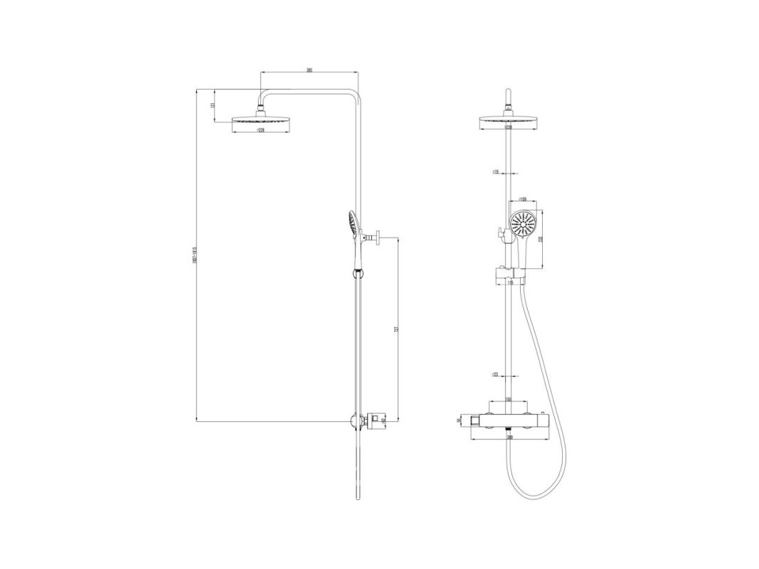 - Аксессуары в комплекте (верхняя поворотная душевая лейка «Тропический дождь» Ø226 мм, 3-функциональная лейка Ø110x243 мм, регулируемое по высоте крепление для лейки, душевой шланг 1,5 м)