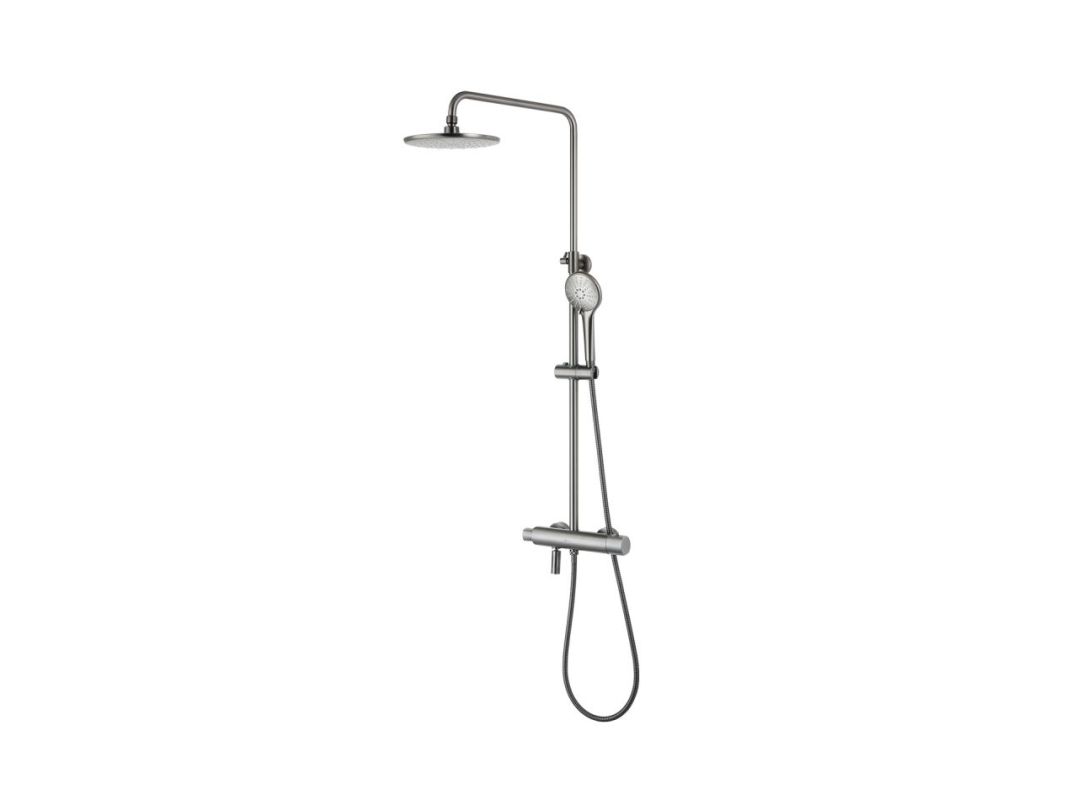 - Аксессуары в комплекте (верхняя поворотная душевая лейка «Тропический дождь» Ø226 мм, 3-функциональная лейка Ø110x243 мм, регулируемое по высоте крепление для лейки, душевой шланг 1,5 м)