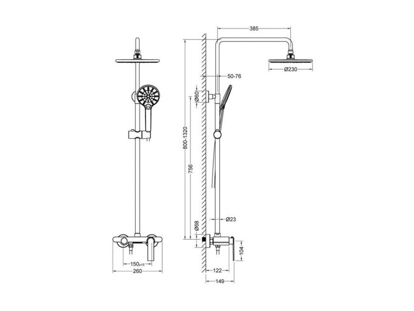 Размер верхнего душа Ø 230 мм