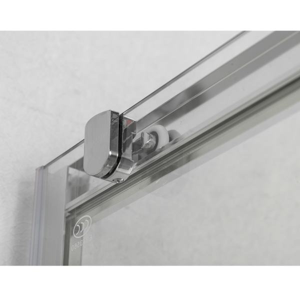 Раздвижная дверь влево. Ограждение универсально. Может быть установлено как в правый, так и в левый угол.