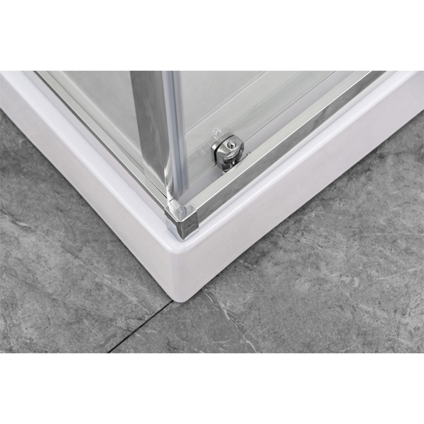 Раздвижная дверь влево. Ограждение универсально. Может быть установлено как в правый, так и в левый угол.