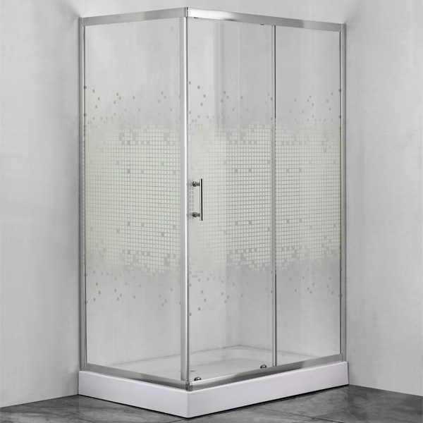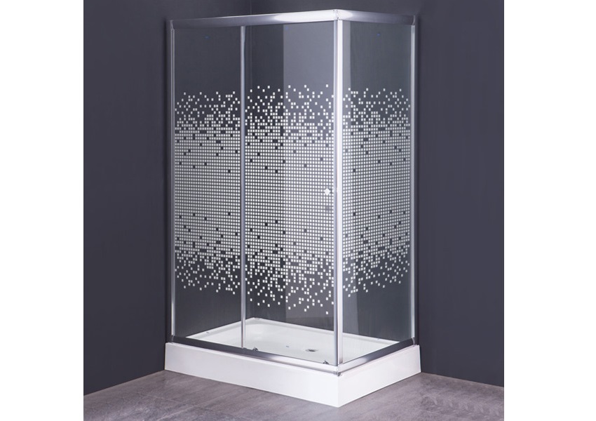 Стенки и дверца душевого уголка - прозрачное стекло с рисунком мозаика толщиной 6 мм