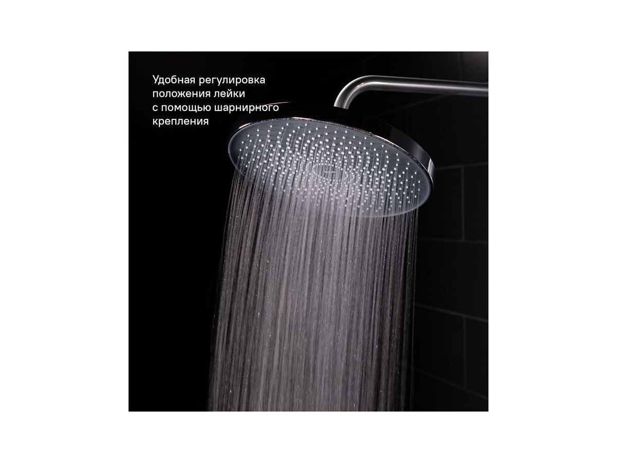 Множество форсунок с микро-отверстиями создает мягкий широкий поток воды; система легкой очистки форсунок от известкового налета благодаря мягким форсункам (достаточно провести по ним пальцем); покрытие устойчиво к коррозии появлению царапин сколов и потускнению; система от перекручивания Twist Free; регулируемая высота стойки; шарнирное соединение позволяет настроить угол наклона лейки; настройка угла наклона ручной лейки; |