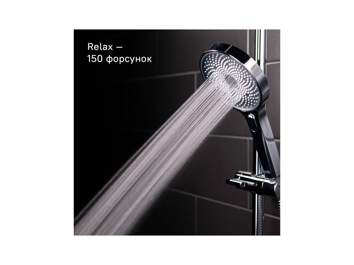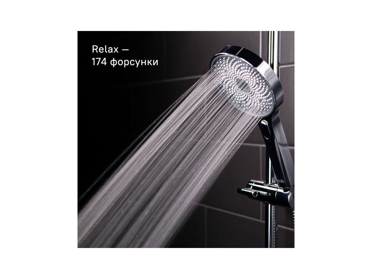 Душевой гарнитур из коллекции SpaHome подарит расслабляющий эффект настоящего домашнего SPA благодаря большому диаметру леек и большому количеству форсунок (417 шт. у верхней лейки). Многочисленные форсунки с микроотверстиями распределяют поток воды равномерными и мягкими струями. Кнопочный переключатель на ручной лейке позволяет комфортно управлять 3 режимами задействующими разное количество форсунок (150, 174 и 324 шт.), меняя интенсивность и объем потока воды в лейке. Подобрать подходящий под настроение и время суток режим не составит труда. Рисунок форсунок в виде изящного цветка лотоса является настоящим украшением и удачным дизайнерским решением всех леек из коллекции SpaHome. Два ПВХ-шланга (1,5 и 0,6 м) с оплеткой из нержавеющей стали в комплекте.