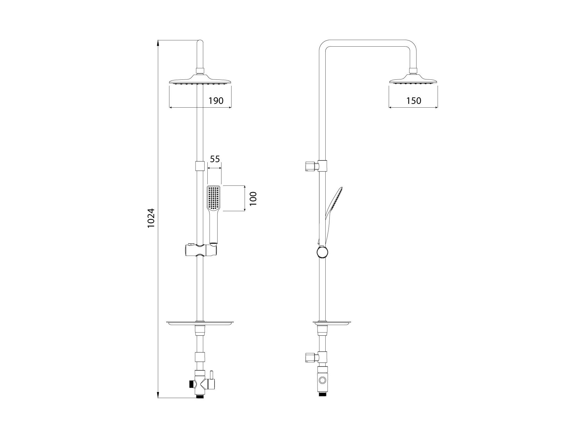 Душевой Гарнитур с Верхней Лейкой «Lemark» без Смесителя 88 (LM8804C)