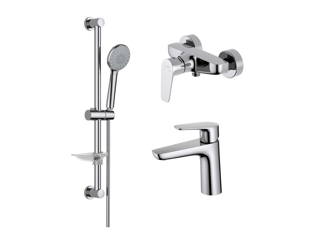 • Душевой гарнитур: душевая стойка с мыльницей, лейка, шланг