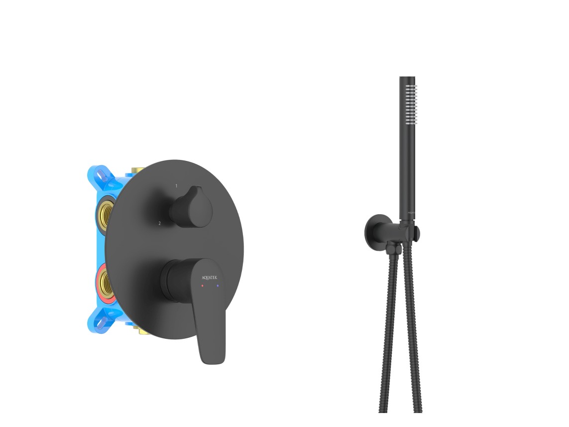 • Душевой гарнитур: лейка, шланг, шланговое подсоединение с держателем