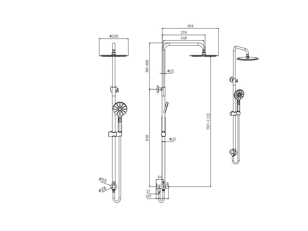 • Душевая система: душевая стойка, верхний душ, лейка, шланг