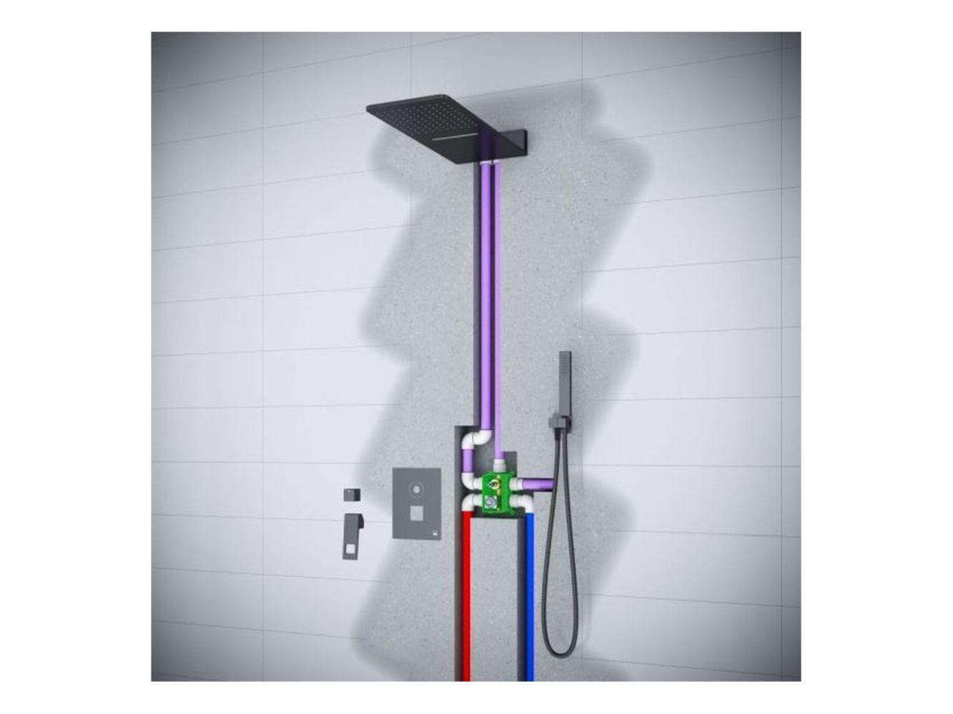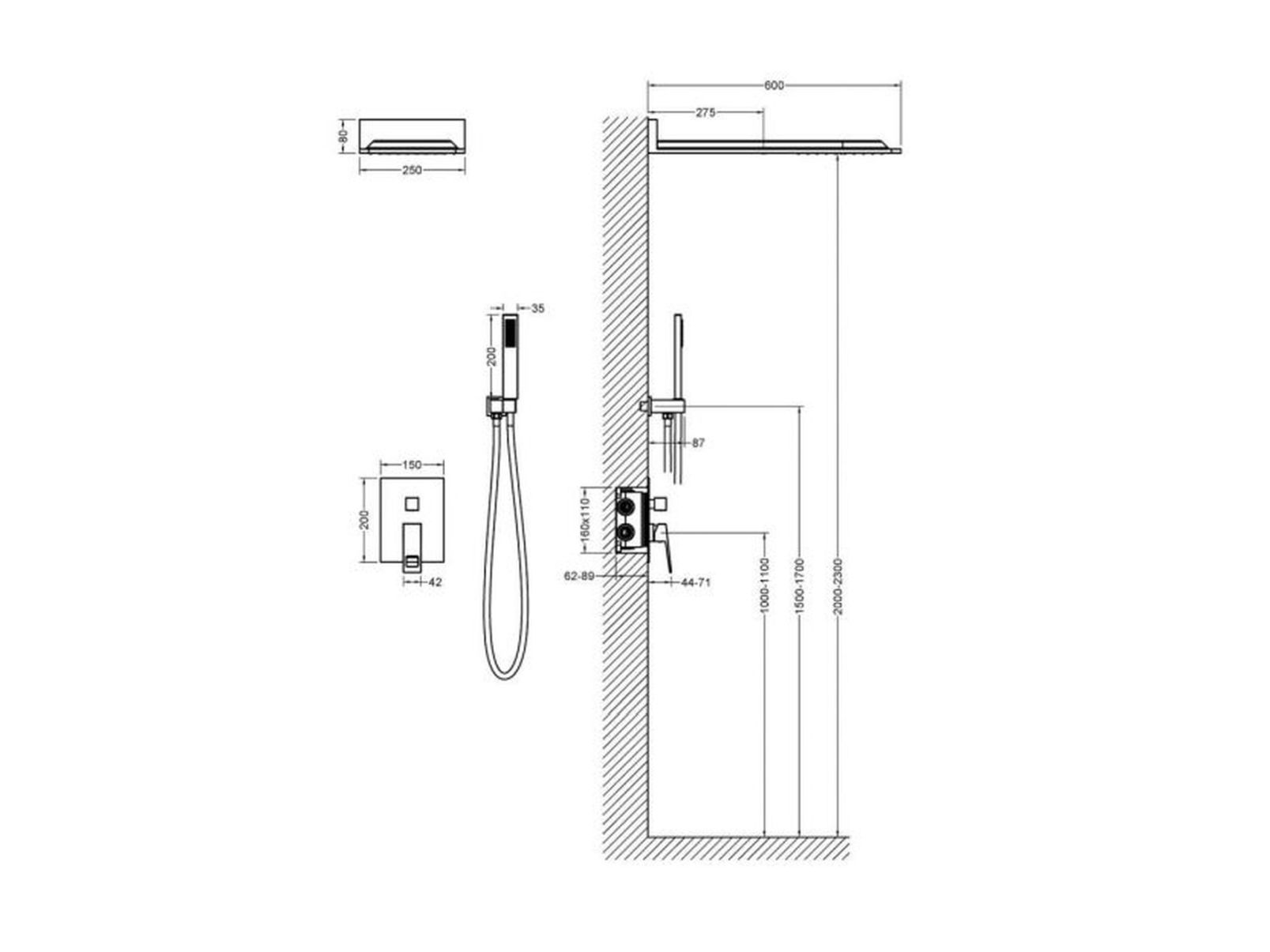 Душевая система скрытого монтажа с прямоугольной лейкой в стиле модерн