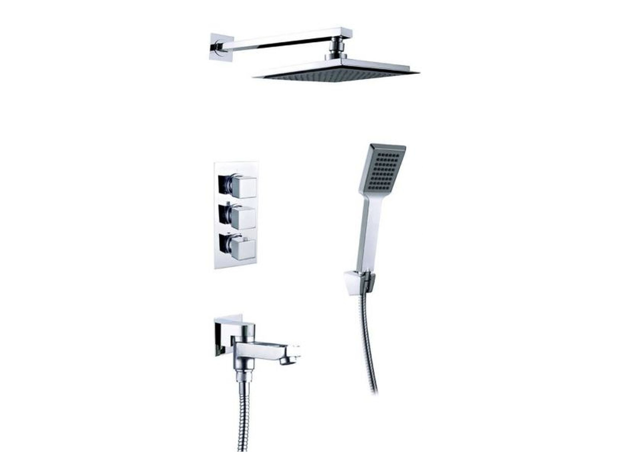 Душевая система скрытого монтажа, с термостатом с квадратной лейкой в стиле модерн