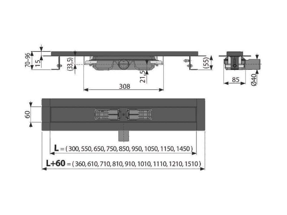 Душевой Лоток «AlcaPlast» Горизонтальный Слив (APZ101BLACK550)