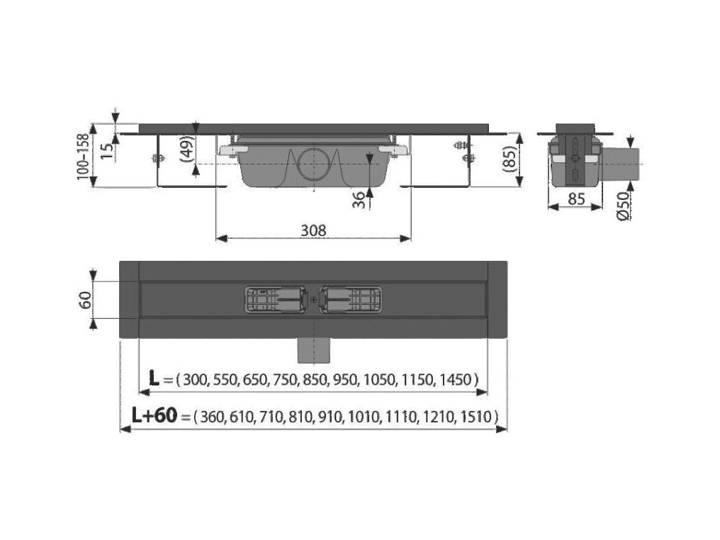Душевой Лоток «AlcaPlast» Горизонтальный Слив (APZ1BLACK550)