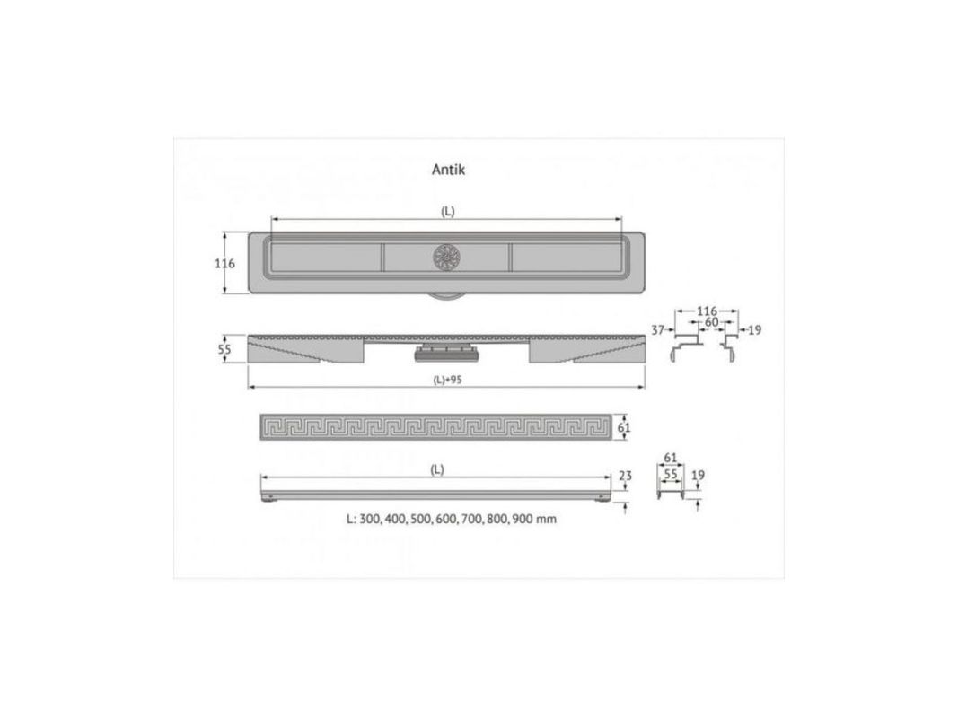 Длина и ширина указаны по внешней части. Высота- монтажная. Решетка и рамка (нержавеющая сталь AISI 304)