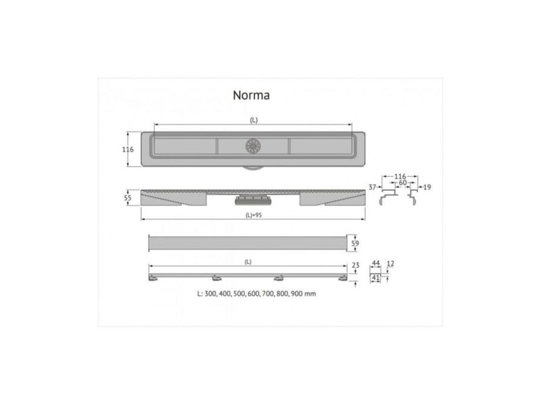 Длина и ширина указаны по внешней части. Высота- монтажная. Решетка и желоб водосток (нержавеющая сталь AISI 304)