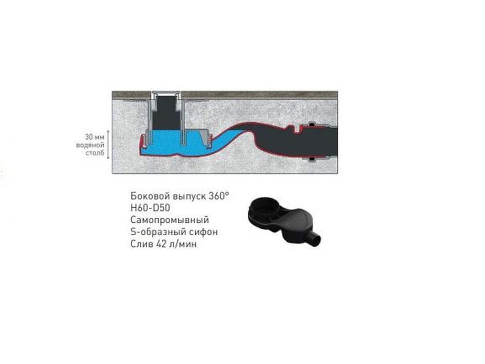горизонтальный выпуск D50 H60, пропускная способность 42л/мин, монтаж 360°