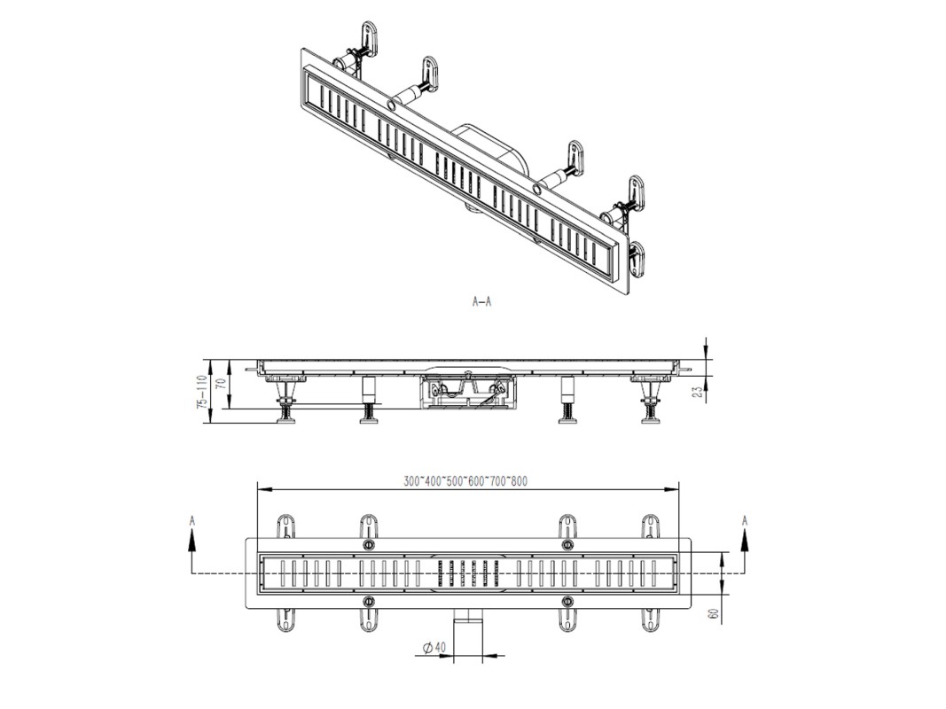 Материал решетки желоба - нержавеющая сталь AISI 304 с черной матовой поверхностью