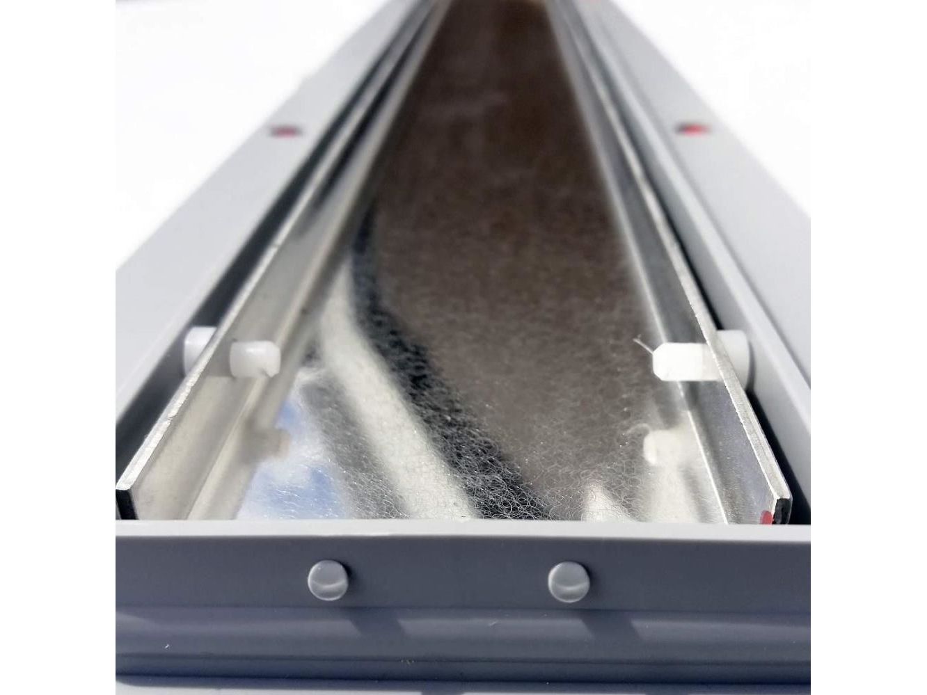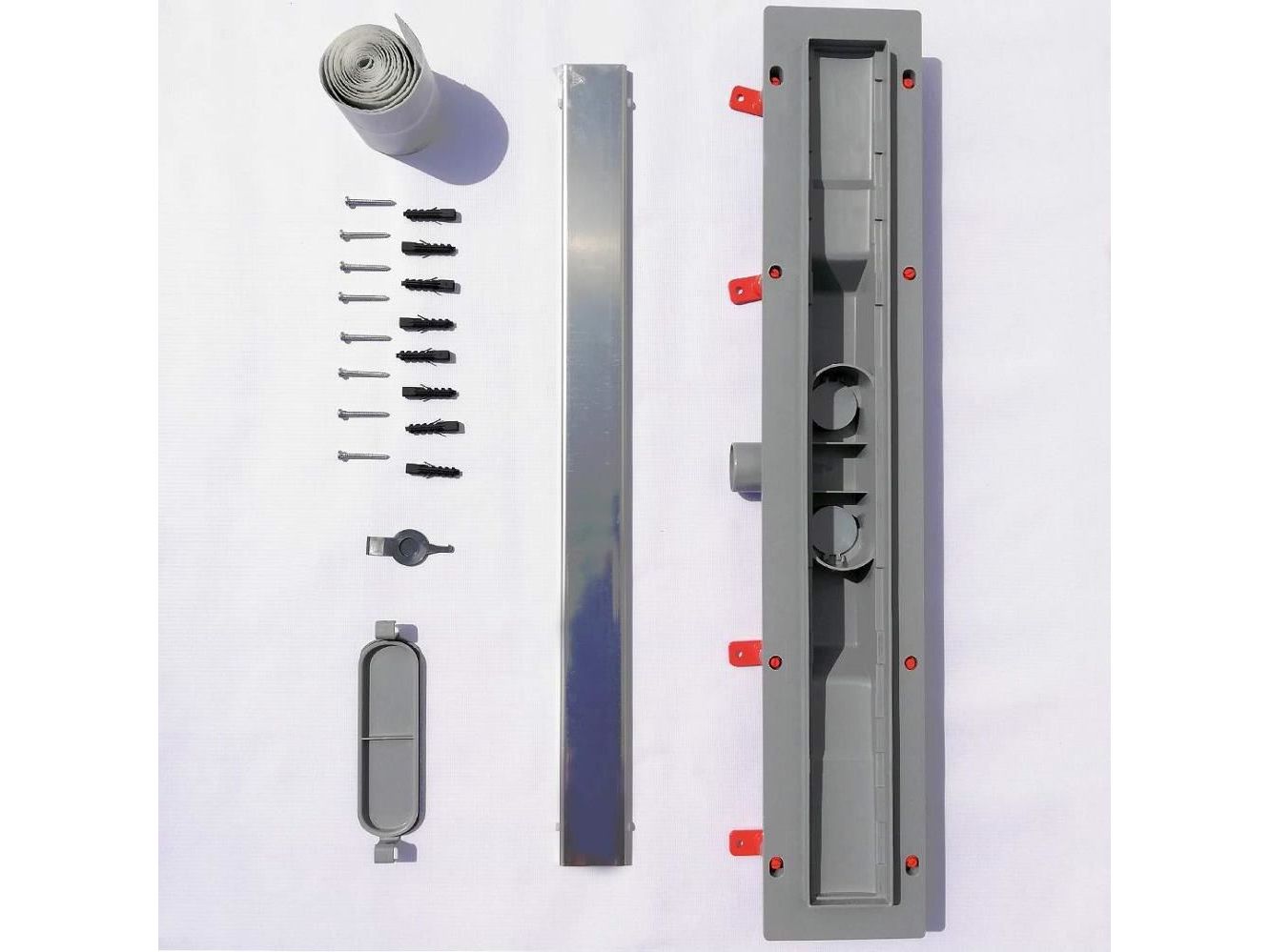 В комплекте: самоклеящаяся гидроизоляционная пленка, регулируемые ножки, комплект креплений, пластиковый ключ для снятия нержавеющей решетки и инструкция по установке.