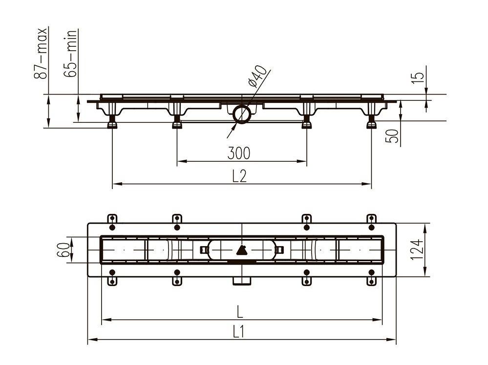 Нижняя часть изготовлена из полипропилена, решетка - из нержавеющей стали DIN 1.4301, с возможностью нагрузки K3 (до 300 кг). Рамка - пластик.