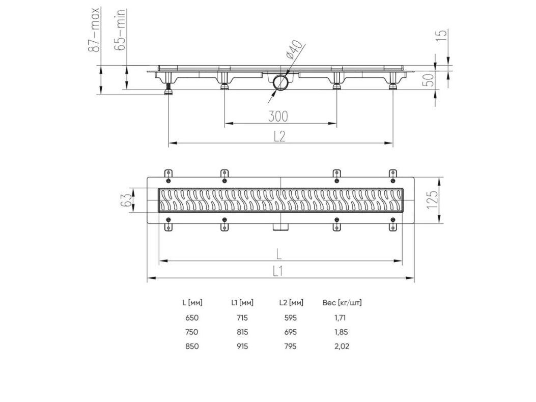 Регулировка высоты и угла наклона, мм от 65 до 87