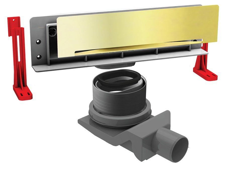 Пристенный душевой трап Pestan Confluo Premium Wall 330 золото выполнен из легкого и прочного полипропилена, устойчивого к тепловому воздействию, бытовой химии и механическим повреждениям. Этот материал не относится к электропроводящим, поэтому при установке заземление не требуется. Сифон имеет S-образную форму и мокрый затвор, препятствующий проникновению запахов. В мокром гидрозатворе функцию «пробки» выполняет вода. Поэтому такие трапы больше подходят для часто используемых душевых зон, чтобы вода в сифоне не пересыхала. В комплект входят регулируемые по высоте ножки, за счет которых душевой трап выравнивается по горизонтали. Угол выходной трубы с коленчатым переходником также легко отрегулировать, а для слива и водоотводящих труб можно использовать три места соединения.