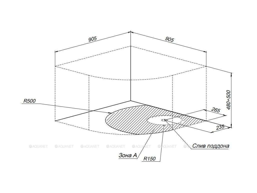 Душевой поддон Aquanet Optimal 90х90 словно маленькая ванна из акрила дает дополнительные возможности при обустройстве душевого уголка формой в четверть круга. За счет своей глубины почти в полметра в поддоне можно купать ребенка, замочить белье, помыть собаку, что очень удобно в повседневных делах. Для установки поддона разработан специальный каркас с регулируемыми ножками, который обеспечит его устойчивость.