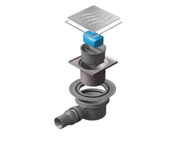 Оснащение: опоры, решетка, прокладка гидроизолирующая, сифон, фланец, рамка под плитку или керамогранит