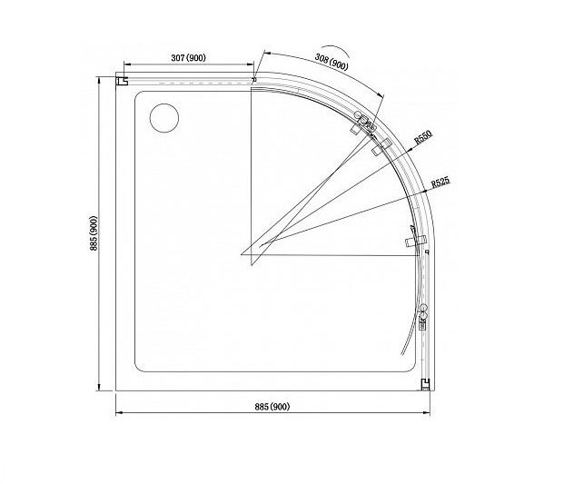 Профиль и детали уголка, радиус открытия двери 550 мм