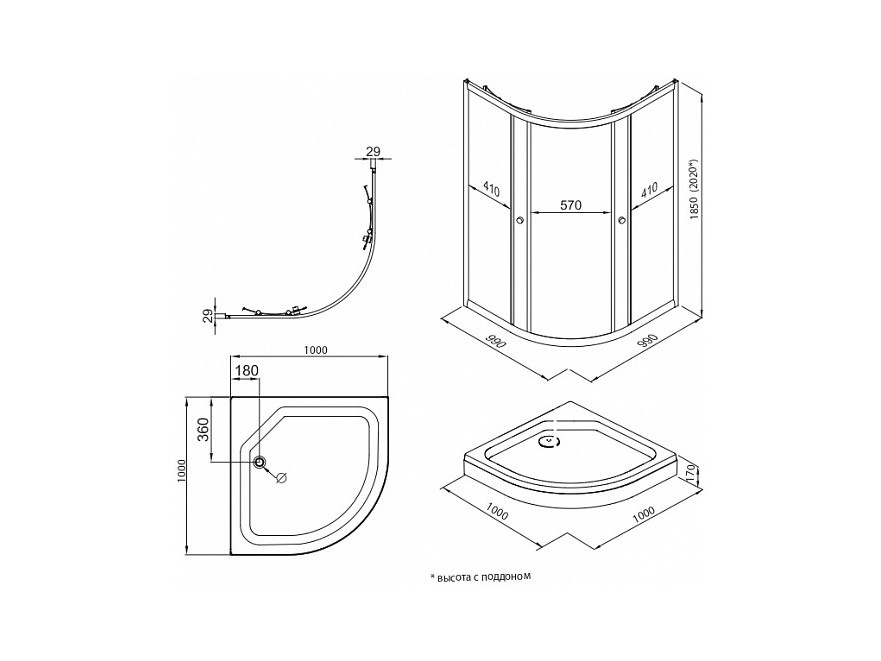 Комплектация: душевой уголок, поддон, сифон.