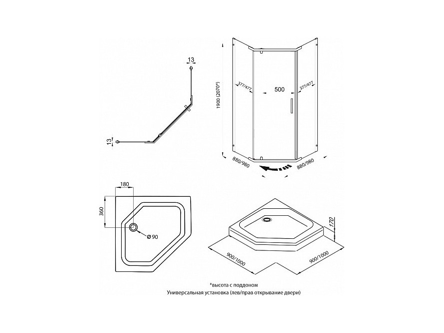 Душевой уголок Triton Дека-Хром 90x90 - арт. Щ0000053608.